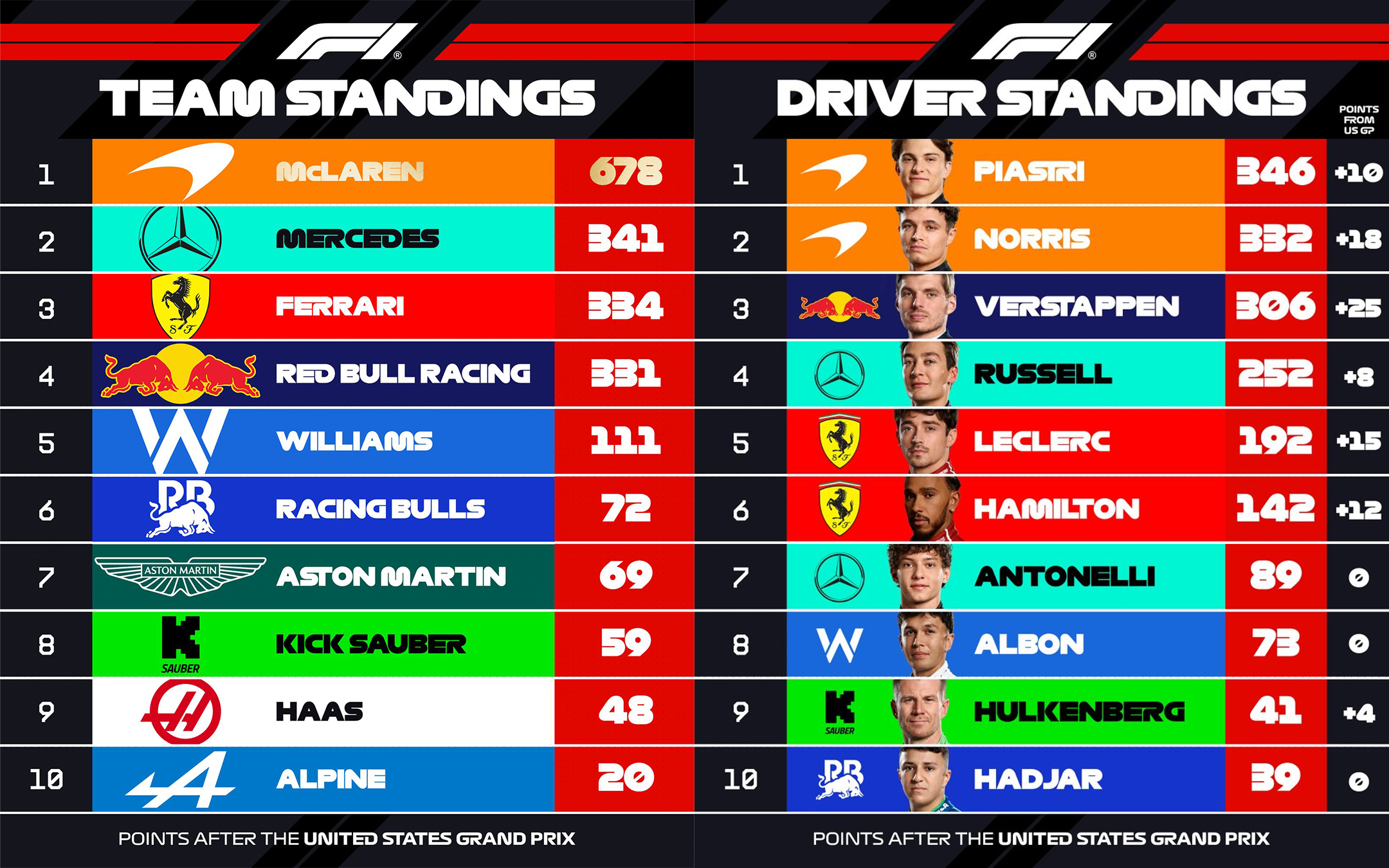 랜도 노리스와 오스카 피아스트리는 더블 포인트 피니시로 팀 챔피언십 선두를 굳건히 지켰고,