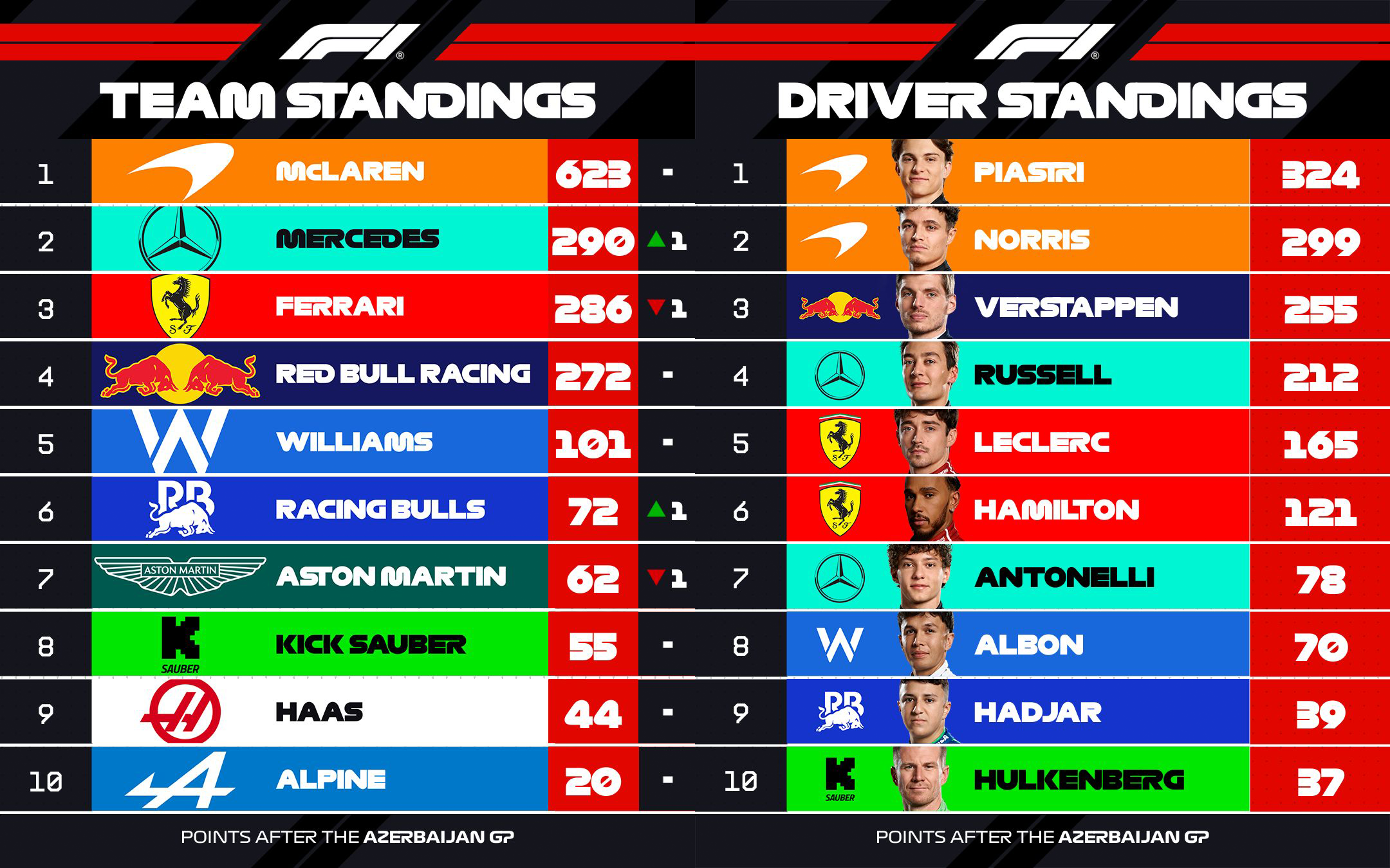2025 아제르바이잔 그랑프리 이후, 챔피언십 판도는 다시 한번 요동쳤습니다.